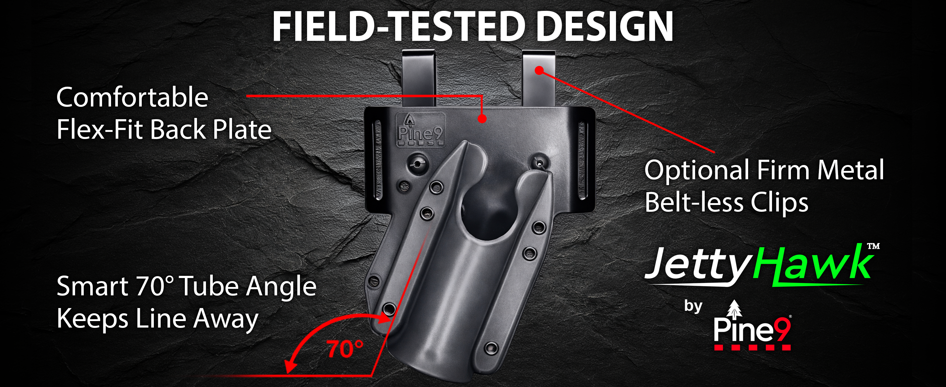 - JettyHawk™ is right-hip only for proper balance and heavy-rod support.